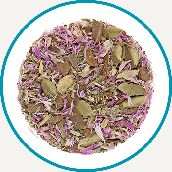 Ingredients: Ginger, Peppermint, Cinnamon, Cardamom, Lemon balm, Licorice, Fennel, Burdock root, Cornflower petals